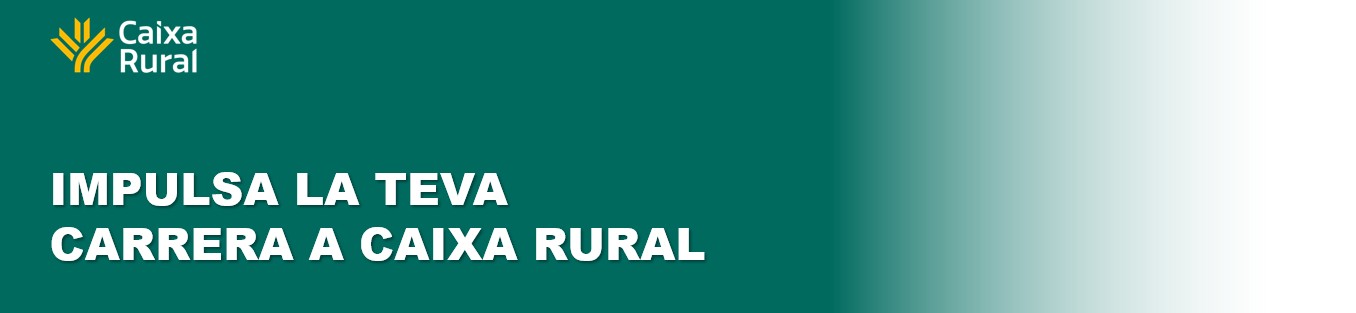Aprofita ara per formar part de Caixa Rural i desenvolupar-te en una entitat financera diferent a qualsevol altra; una Cooperativa de Crèdit compromesa amb el territori que treballa amb l’objectiu d’ajudar-te a aconseguir els teus somnis i assolir un futur millor.